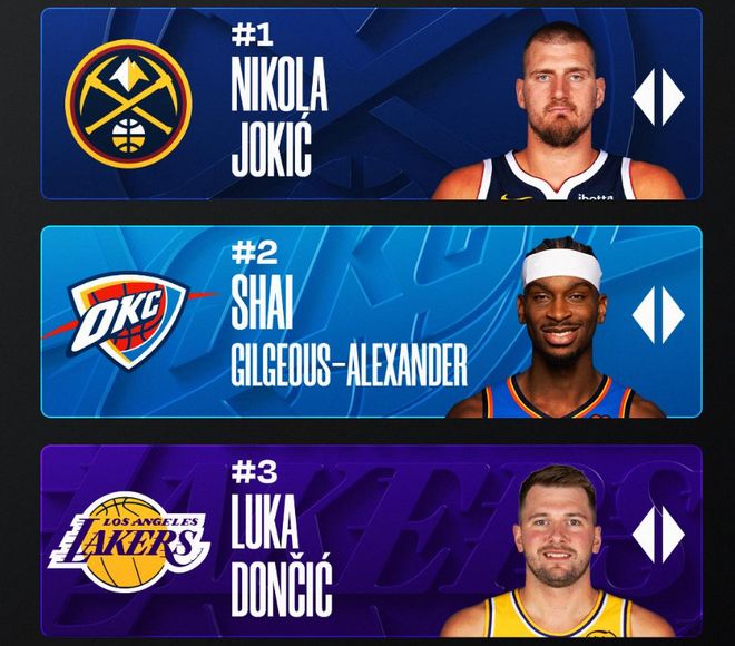 約基奇MVP三榜第一!官方排名七連霸 賠率概率也超亞歷山大