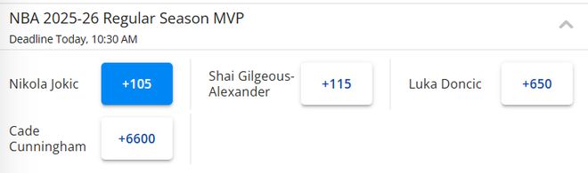 最后是MVP賠率榜,在年終大戰(zhàn)前,排在首位的也是亞歷山大。如今,約基奇的賠率變成+105,而亞歷山大是+115,約基奇同樣完成超越,微弱優(yōu)勢(shì)領(lǐng)先SGA。